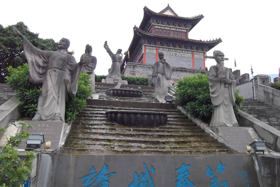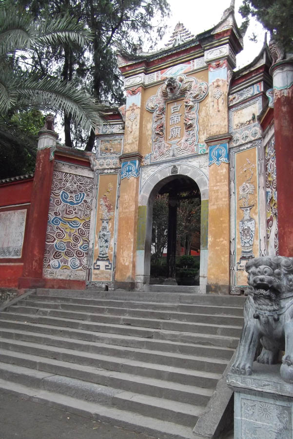 On the far side of the ornate painted gate at the top of the stairs was a huge dragon statue. The founder of the city, Gongsun Shu (or someone else), saw a white dragon rising from a well (or in the form of a cloud). The white dragon was considered a good omen for founding a city there anyway, and it remained untouched during the warlike period which followed.