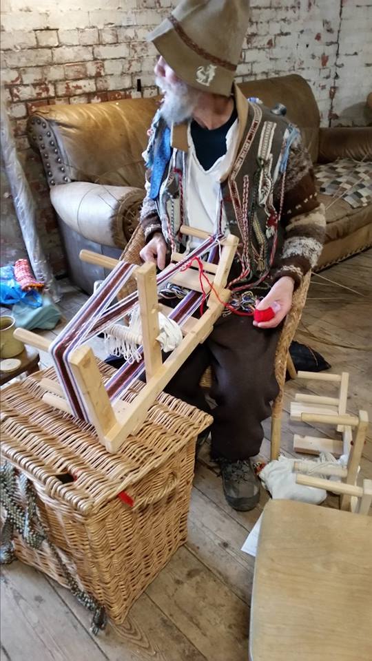 Tony and Alison Hughes – weaving with an Inkle loom as seen at the Rural Life Museum in years when it is not closed for renovation. Tony makes these looms himself and sells them for a mere £20 at this event! Booked for all the March sessions.