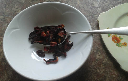 I thought I’d try dehydrating strawberries.  The internet confidently assured me that, on a low oven, this process could be accomplished in two hours, after which you could powder them into a jar.